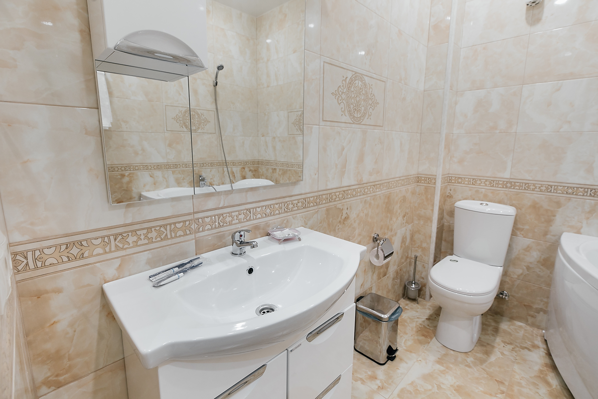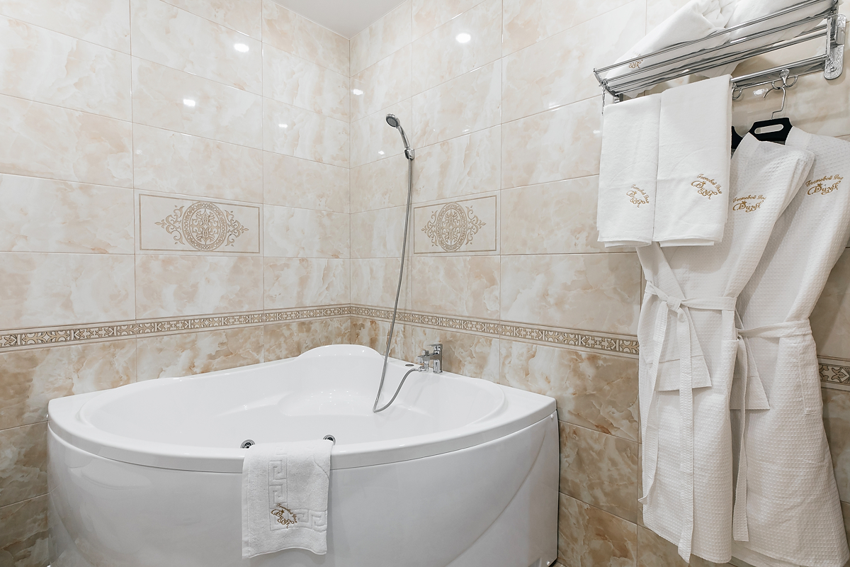Зеркало ,халаты, панорама, WiFi, телевизор, холодильник, джакузи, умывальные средства, кондиционер, журнальный столик, чайник, посуда, тапочки, кабельное телевидение, противопожарное оснащение.